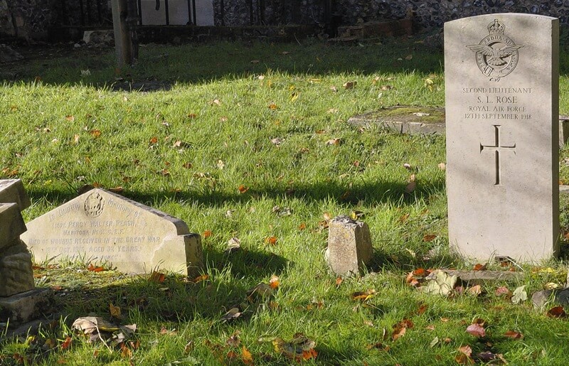 In a peaceful, sheltered corner of St Leonard’s Churchyard are found two WWI Canadian War Graves. Although born in Manitoba, Sidney Lasenby Rose, 31, who is buried here, had strong roots in Chesham Bois as his family owned mills and land locally. Percy Walter Peach, 32, in the neighbouring grave had only visited the area once. This was just weeks before his death whilst on leave to see his mother. These are their stories.