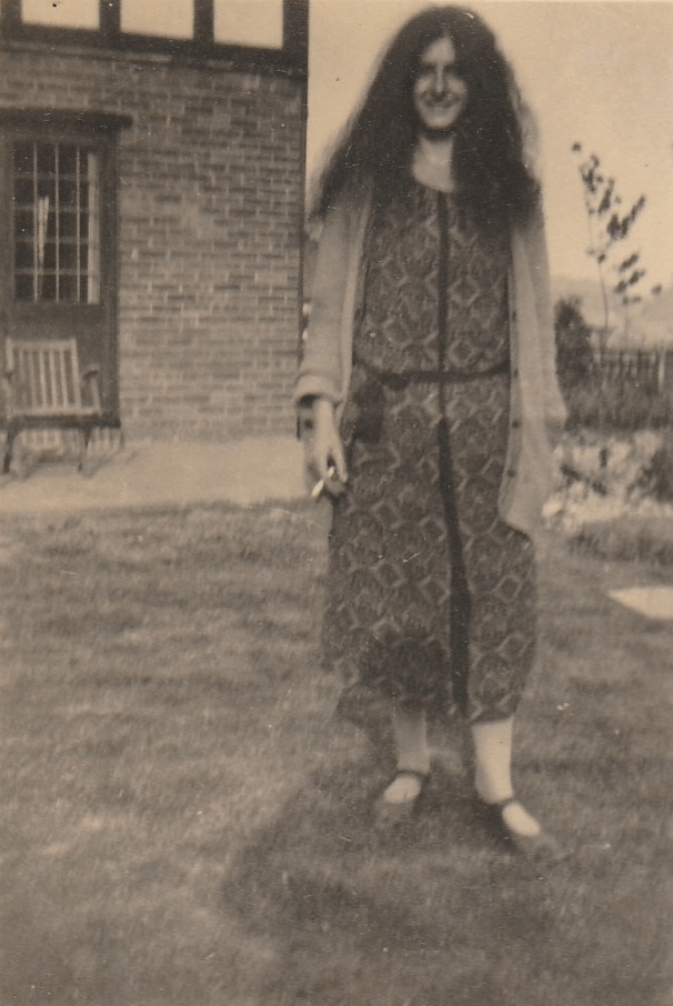 | Physical Description | Black and white full-length photo of Ursula Duparc with long hair wearing a dress and cardigan, standing. The Bynn behind. Cigarette in right hand. Original with integral mount. |